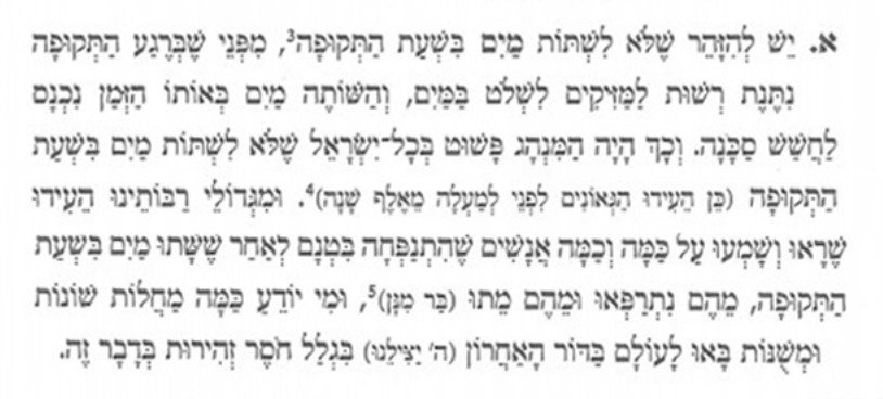 5. לאחר שעת התקופה, אין לשתות את המים שהיו "תלושים" בשעת התקופה, כלומר: אין לשתות את המים שהיו בתוך כלים או בבקבוק ואף במקר..