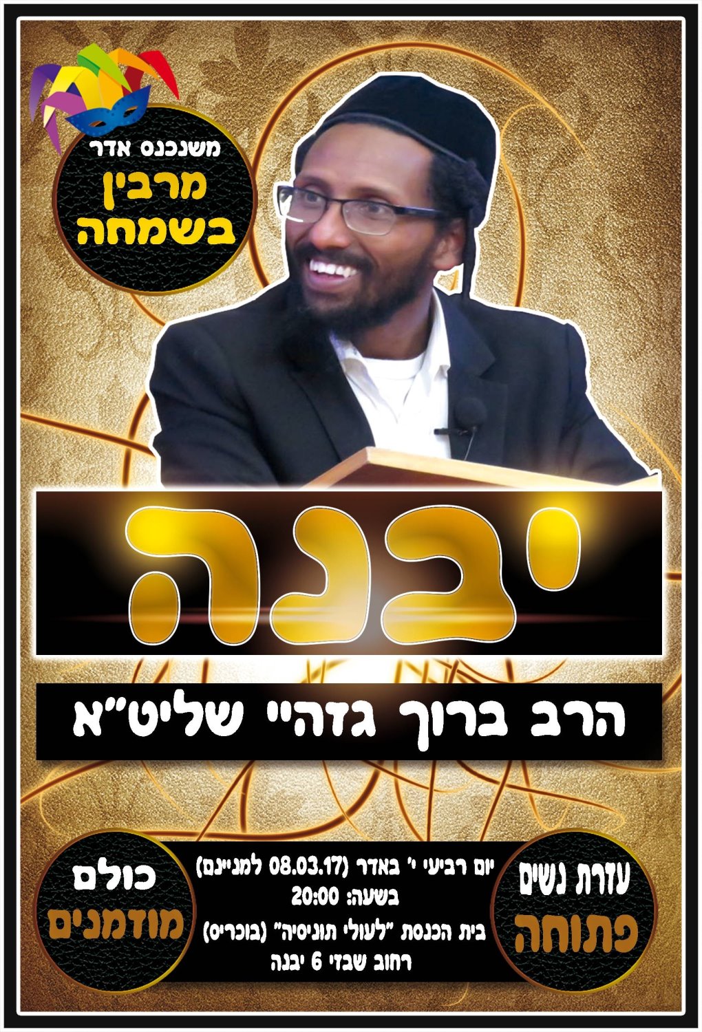 הרב ברוך גזהיי שליט"א יום רביעי י' באדר בשעה: 20:00