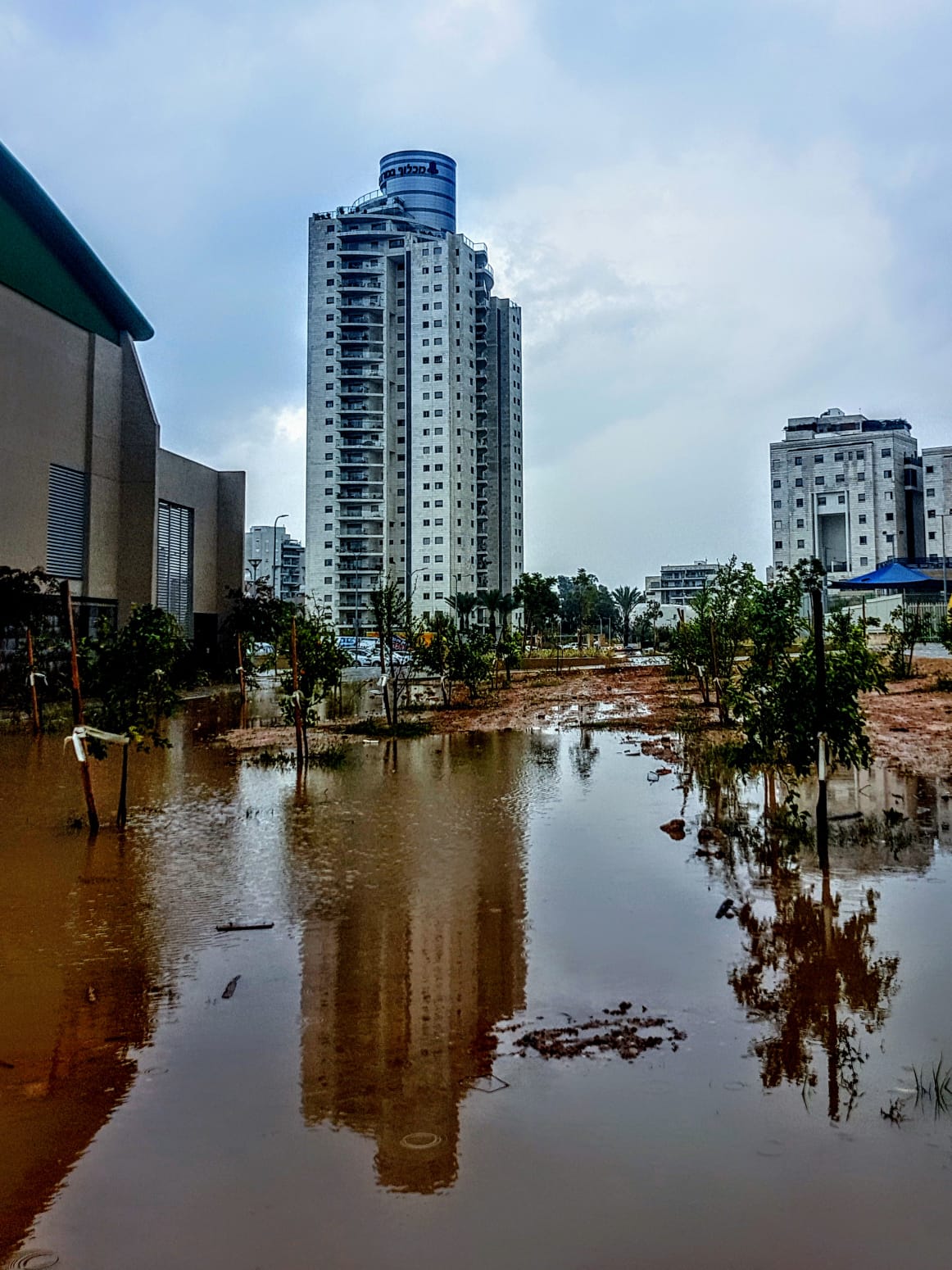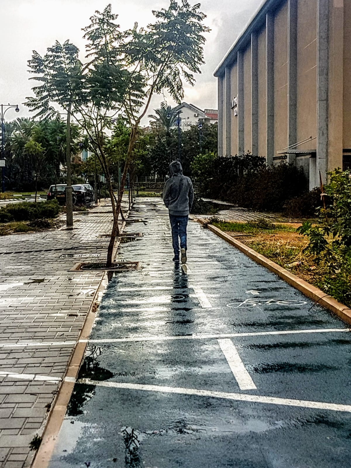 כְּשֶׁהַגֶּשֶׁם זוֹרֵם לוֹ בָּרְחוֹבוֹת כְּמוֹ נָהָר,