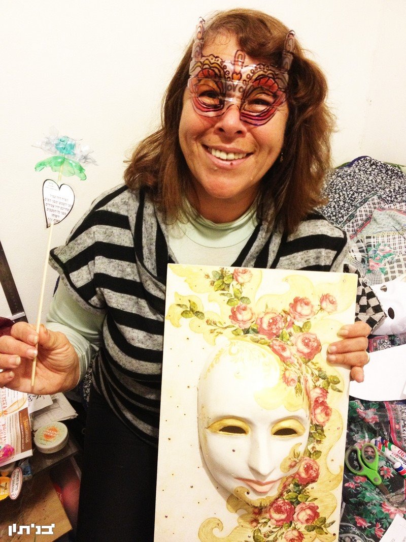 ביבנה מכירים אותה כנגנית האקורדיון בכניסה לשופרסל * אבל מרים ועקנין היא גם אמנית בנשמה שמכינה מסכות מבקבוקי שתייה ישנים