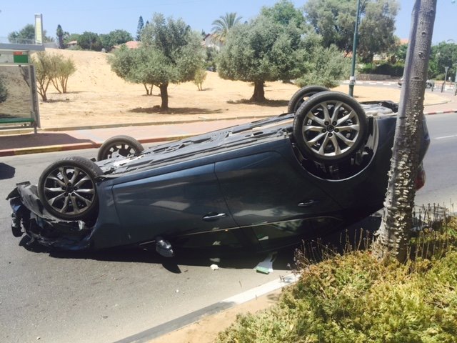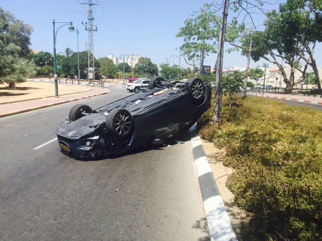 תאונה בשדרות דואני, בין היכל התרבות לאיצטדיון העירוני. רכב התהפך, תינוק ואימו נפצעו קל. נסיבות התאונה נבדקות. כנסו לתמונות