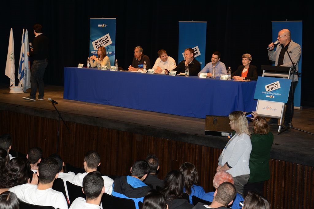 פאנל הבוחרים החדשים של mako הגיע בשישי לתיכון האלון ע"ש גינסבורג ביבנה. נציגי המפלגות הופיעו בזה אחר זה בנאום בחירות – "הייד פארק" פוליטי בו הציגו בפני התלמידים את הישגי מפלגותיהם ועסקו בנושאים הנוגעים לתחומי החינוך, היוזמה לביטול המבחן הפסיכומטרי, כלכלה וחברה והחלטת ועדת הבחירות להדיח את ח"כ חנין זועבי ועוד. המשתתפים בפאנל היו שרון גל (ישראל ביתנו), ח"כ מיקי לוי (יש עתיד), ח"כ שולי מועלם (הבית היהודי), ח"כ אראל מרגלית (המחנה הציוני), יואב קיש (הליכוד), אורי זכי (מרצ) וד"ר יפעת שאשא ביטון (כולנו).