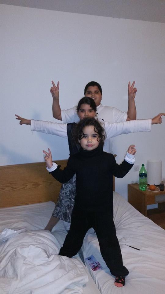 אדיר והודיה ונויה אמונה הנכדי של יהודה אמונה מבלים בסופ"ש בבית מלון.