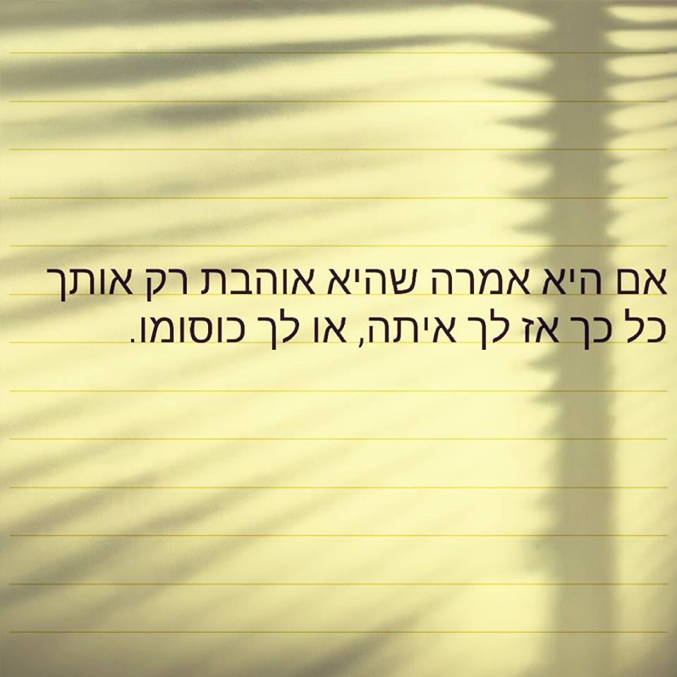 אז תמשיכו לומר שכיף לכם להיות רווקים בגיל 30+ ואני אמשיך לא להאמין לכם. כי אני יודעת בדיוק איך זה מרגיש ועד כמה הבדידות יכולה לכאוב. הייתי שם וכאבתי את זה בכל דרך אפשרית וכמעט באותה נשימה מילאתי את החיים שלי בהמון חברים ועבודה ובילויים וכמעט כל דבר שיכולתי עד שהבנתי ששום דבר הוא לא כמו האהבה שגם אתם רוצים שתהיה לכם, אתם פשוט פוחדים להודות בזה כאילו מי שישמע- רק אתם רוצים אהבה בעולם הזה.