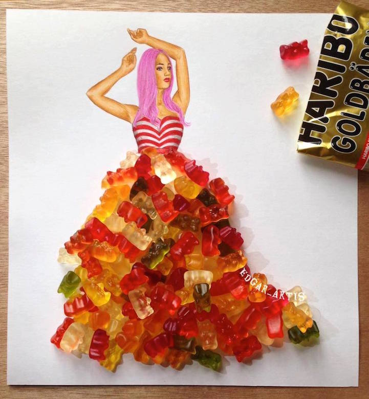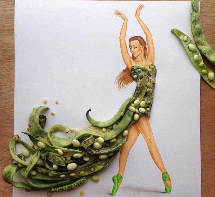 בחשיבה מחוץ לקופסה, לקחת המאייר אדגר ארטיס מזונות שמצא בביתו ו"הלביש" באמצעות שוקולד נוטלה, אפונה, בצל, פיטריות ועוד נשים בשמלות ועיצובים אופנתיים מדליקים ולא שיגרתיים.