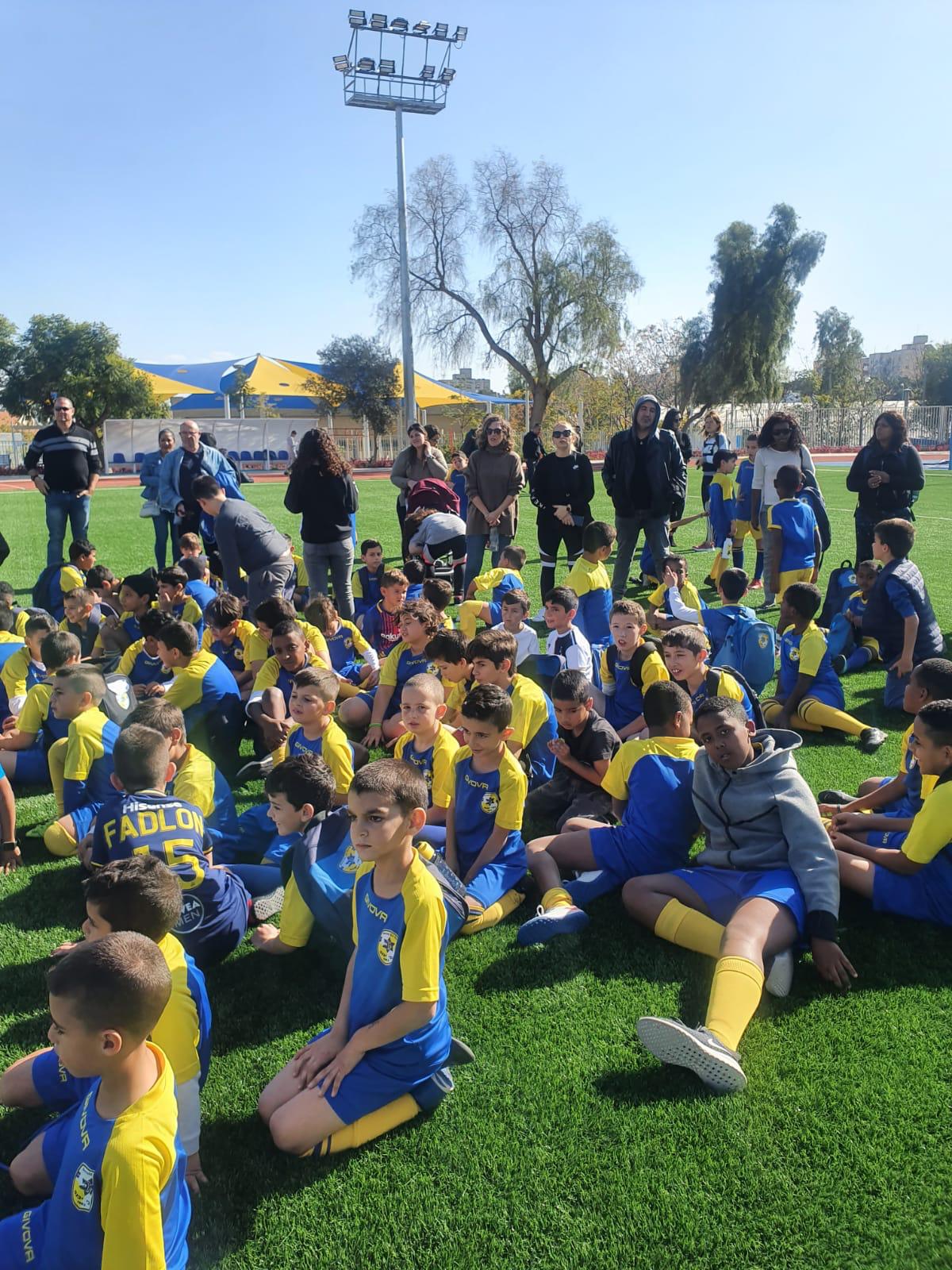 כ- 350 ילדים מחוף אשקלון ויבנה בכיתות א' עד ט' הגיעו למגרשים החדשים בקריית הספורט החדשה ונהנו מחווית כדורגל יוצאת מן הכלל. בסוף המשחק נהנו הילדים מסופגניות חמות.