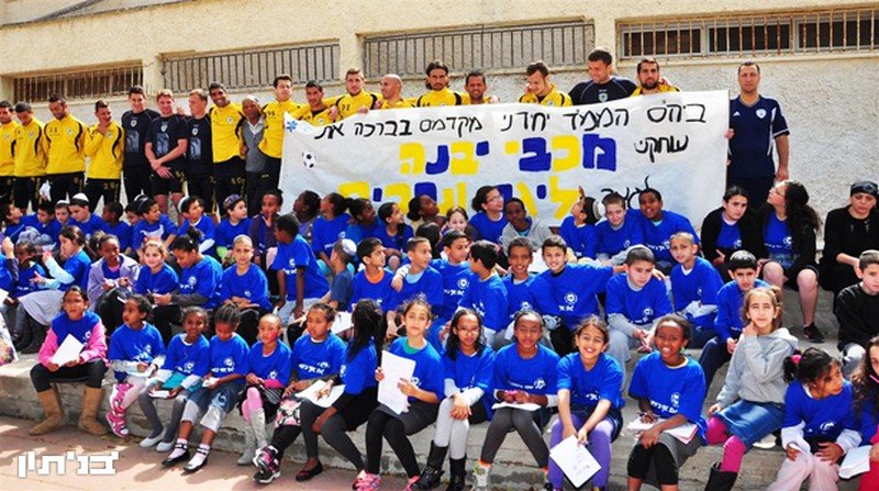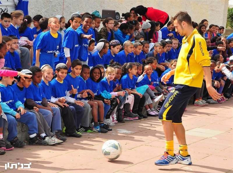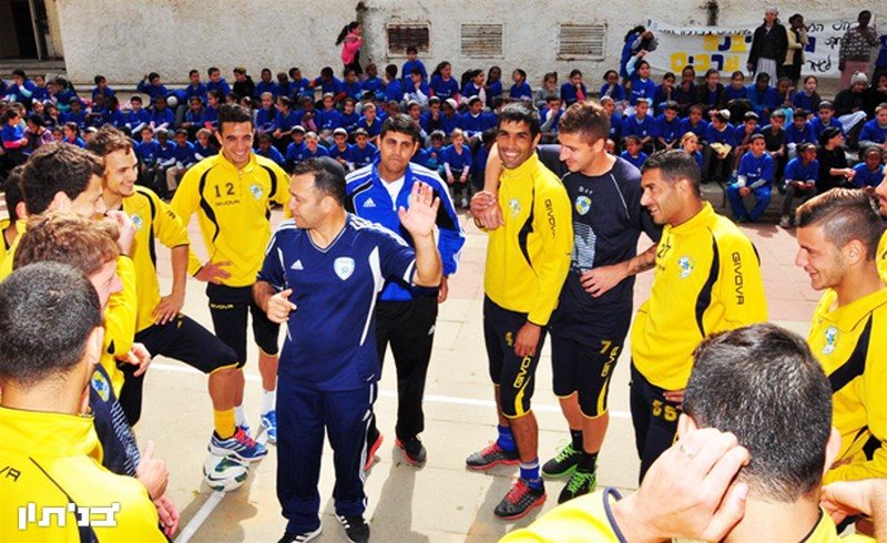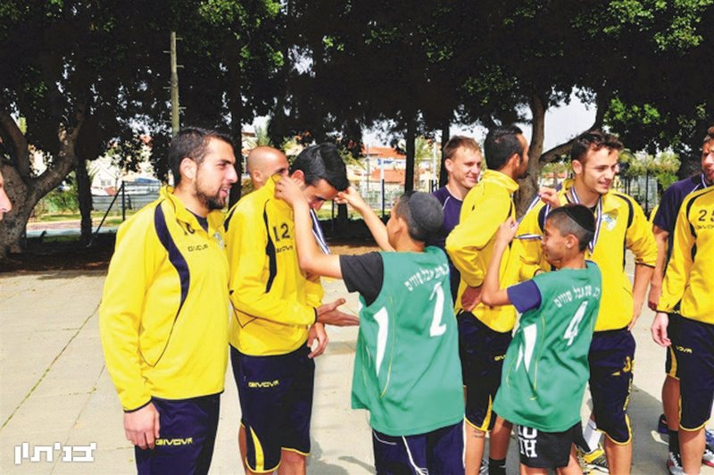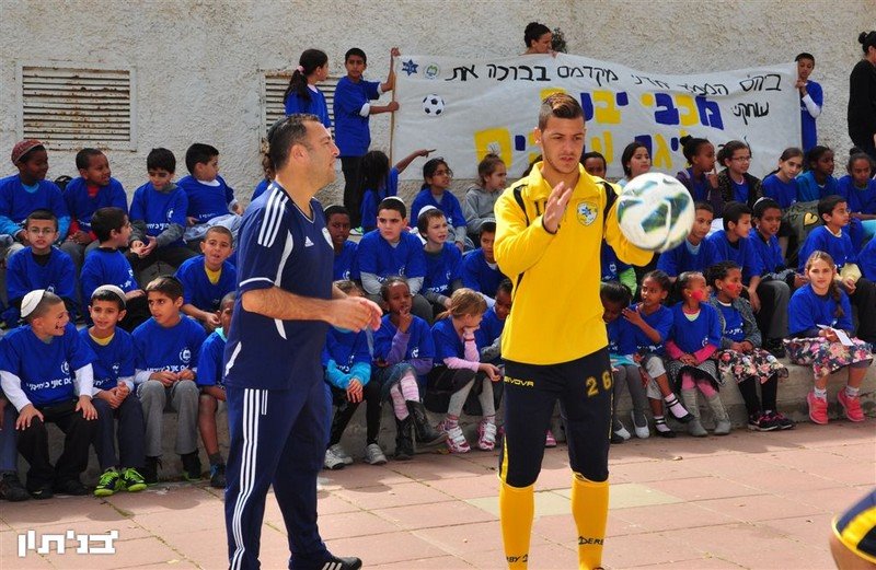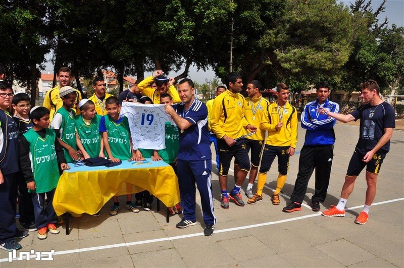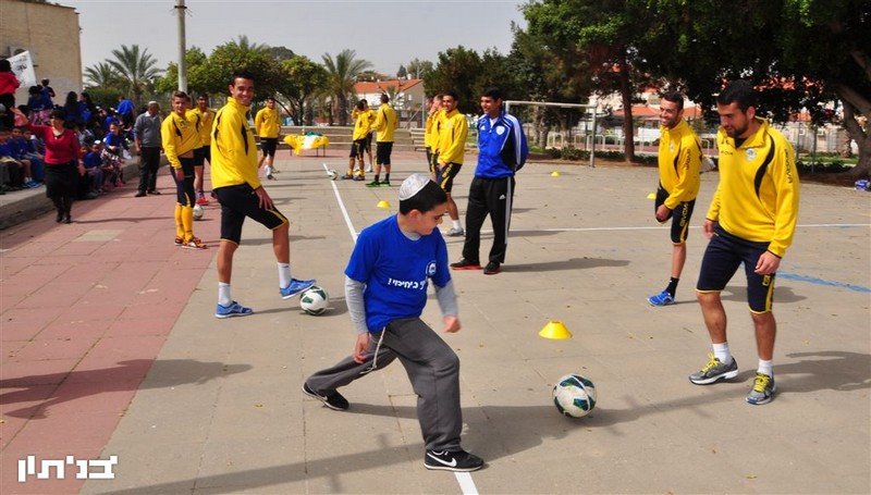 הפתעה מרגשת ציפתה לתלמידי בית-ספר ''יחידני'' שזכו להשתתף במפגש ספורטיבי עם כל שחקני קבוצת הכדורגל של מכבי יבנה