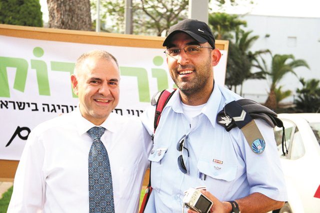 יניב ניאג'י נתפס בעדשה בכנס מתנדבי "אור ירוק" עם מנכ"ל העמותה שמואל אבוהב