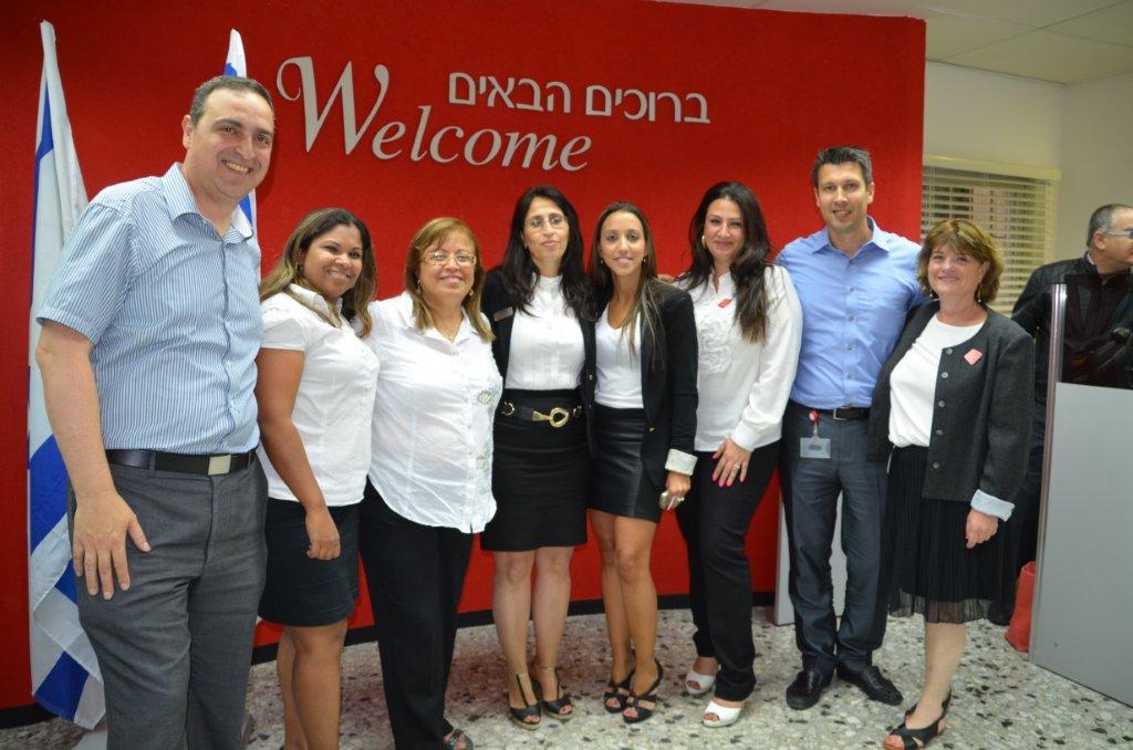 צוות בנק הפועלים סניף יבנה מודה ללקוחותיו העסקיים על כנס מוצלח שהתקיים בסניף. (צילום דוד מטודי)