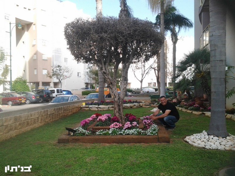 אבי ממור נוף גינון מציג וגאה בעבודות הגינון בבניין בלב יבנה שכבר הספיקו להתפנק לכבוד החג