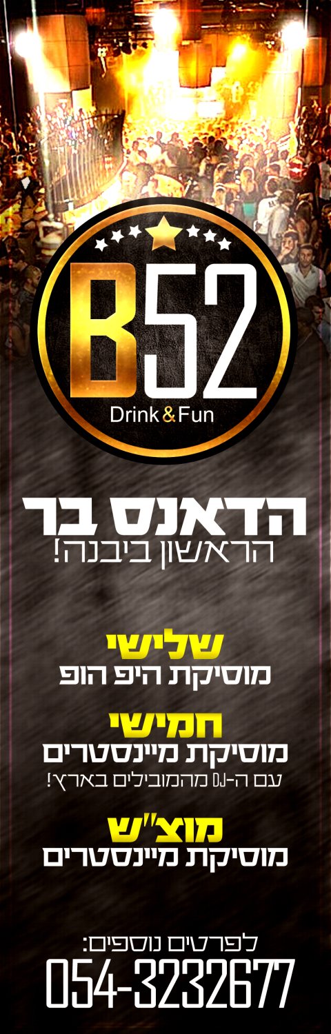 יבנה צמאה לחיי לילה. כבר שנים שבני הנוער והמבוגרים מחפשים מה לעשות בלילה ונודדים לערים הסמוכות. כעת כל זה משתנה. מועדון ה-B-52 ייפתח ב-24.9, יום חמישי. סופסוף מועדון בעיר.