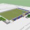 כל המבנים הישנים בצפון האצטדיון ייהרסו והחומה בקטע הזה תיהרס גם היא. בדיון אישר מהנדס העירייה למתכננים להגדיל את שטח האצטדיון צפונה. מבט מצפון-מערב. הדמיה